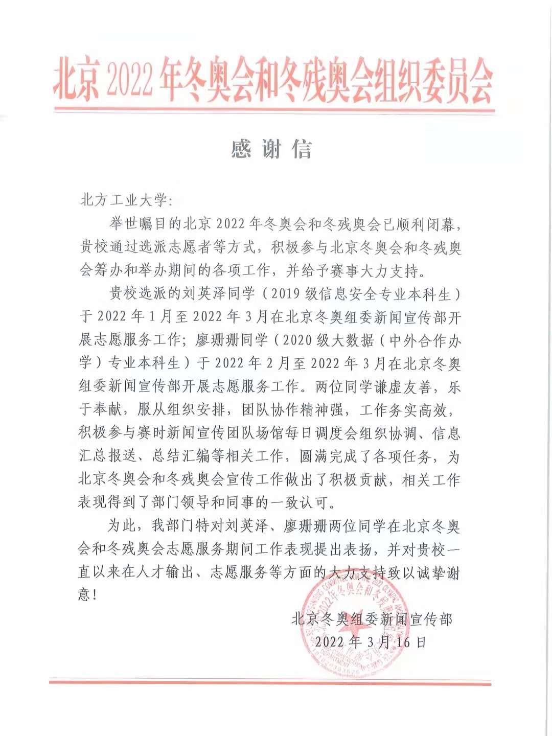 作为北京冬奥组委志愿者部宣传培训处的一名冬奥志愿者,廖珊珊和志愿者伙伴们参与到北京冬奥组委志愿者部宣传培训处的日常工作当中,主要负责协助北京冬奥会的新闻宣传工作,多渠道、全方位宣传冬奥志愿者风采,讲好冬奥故事。主要工作内容包括北京冬奥会相关宣传报道的校审及初步加工工作,志愿者培训情况数据的整理汇总,联系各志愿者各志愿者工作协调小组等。